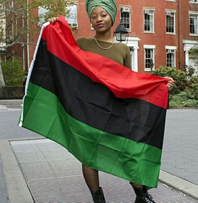 Here stands a women of colour holding the UNIA (Universal Negro Improvement Association) flag. They created the flag in 1920.